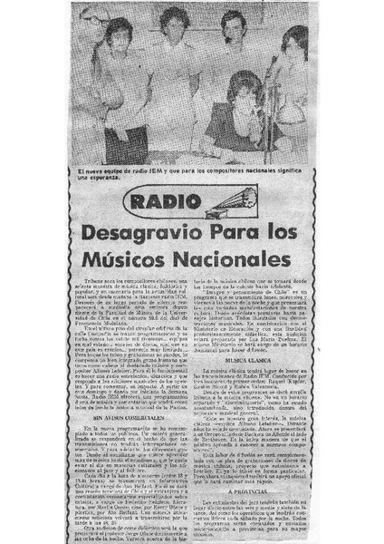 Desagravio Para los Músicos Nacionales Radio. [artículo]