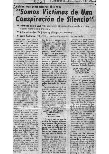 "Somos víctimas de una conspiración de silencio" Hablan tres compositores chilenos [artículo]
