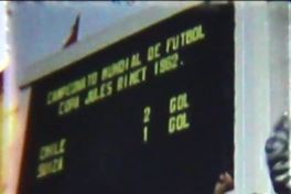Imagenes del partido de la selección de futbol chilena versus Suiza en el contexto del Mundial de Futbol de 1962 en Chile.