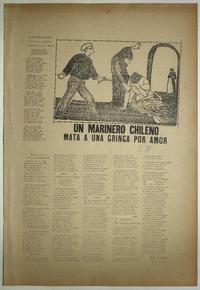 Un marinero chileno mata a una gringa por amor / El Loro. [Chile] : [Impresor no identificado], [1894?] 1 hoja : ilustraciones ; 56 x 39 cm. .