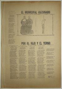 El municipal asesinado por el hijo y el yerno / El Loro. [Chile] : [Impresor no identificado], [1894?] 1 hoja : ilustraciones ; 56 x 39 cm. .