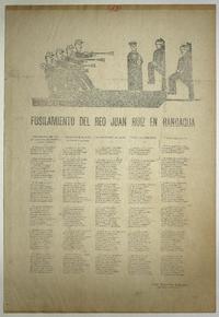 Fusilamiento del reo Juan Ruiz en Rancagua / José Hipolito Cordero. [Chile] : [Impresor no identificado], [1894?] 1 hoja : ilustraciones ; 55 x 39 cm. .