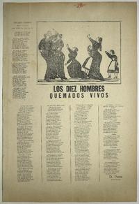 Los diez hombres quemados vivos / D. Parra. [Chile] : [Impresor no identificado], [1894?] 1 hoja : ilustraciones ; 55 x 37 cm. .