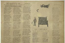 Feroz asesinato en El Tigre : una esposa muerta con diez puñaladas / Rolak. [Chile] : [Impresor no identificado], [1892?] 1 hoja : ilustraciones ; 28 x 39 cm. .