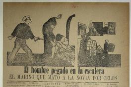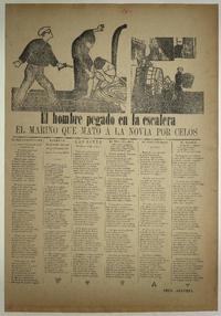 El hombre pegado en la escalera ; El marino que mato a la novia por celos / Pepa Aravena. [Chile] : [Impresor no identificado], [1890?] 1 hoja : ilustraciones ; 54 x 39 cm. .