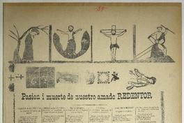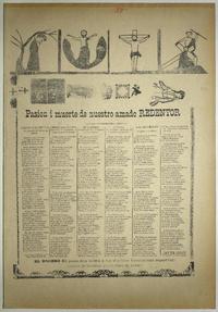 Pasion i muerte de nuestro amado Redentor / Javier Jerez. [Chile] : Imprenta Maturana, [1890?] 1 hoja : ilustraciones ; 55 x 39 cm. .