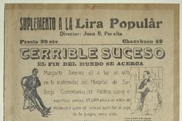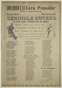Suplemento a la Lira Populàr / director: Juan B. Peralta. [Chile] : Imprenta "La Nueva República", 1929. 1 hoja : ilustraciones ; 38 x 27 cm. .