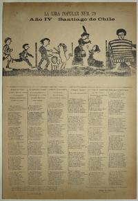 La lira popular año IV num. 79 Santiago de Chile / Juan B. Peralta. [Chile] : Imprenta San Antonio, [1903?] 1 hoja : ilustraciones ; 55 x 39 cm. .