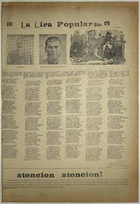 La lira popular [año] XIII núm. 179 / J.B. Peralta. [Chile] : [Impresor no identificado], [1911?] 1 hoja : ilustraciones, retratos ; 55 x 38 cm. .