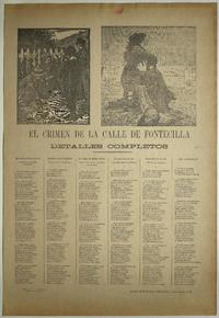El crímen de la calle Fontecilla : detalles completos / Juan Bautista Peralta. [Chile] : Imprenta CERV., [1896?] 1 hoja : ilustraciones ; 56 x 38 cm. .
