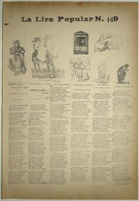 La lira popular no. 149 / Juan B. Peralta. [Chile] : Imprenta San Francisco, [1908?] 1 hoja : ilustraciones ; 55 x 39 cm. .