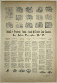Entrada a Jerusalen i pasion i muerte de Nuestro Señor Jesucristo : la lira popular no. 11 / Juan B. Peralta. [Chile] : Imprenta Barcelona, [1900?] 1 hoja : ilustraciones ; 55 x 39 cm. .