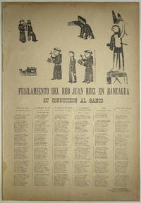 Fusilamiento del reo Juan Ruiz en Rancagua : su conduccion al banco / Rosa Araneda. [Chile] : [Impresor no identificado], [1894?] 1 hoja : ilustraciones ; 56 x 39 cm. .