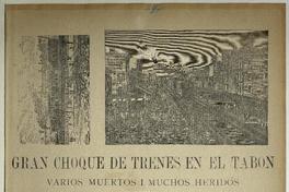 Gran choque de trenes en el Tabon : varios muertos i muchos heridos / Rosa Araneda. [Chile] : [Impresor no identificado], [1894?] 1 hoja : ilustraciones ; 55 x 39 cm. .