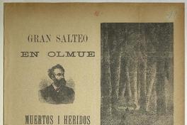 Gran salteo en Olmué : muertos i heridos / Rosa Araneda. [Chile] : [Impresor no identificado], [entre 1866-1930] 1 hoja : ilustraciones, retrato ; 56 x 39 cm. .