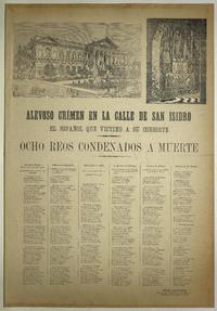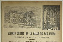 Alevoso crímen en la calle de San Isidro : el español que victimó a su consorte ; Ocho reos condenados a muerte / Rosa Araneda. [Chile] : [Impresor no identificado], [1894?] 1 hoja : ilustraciones ; 55 x 39 cm. .