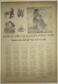 El padre que ultimó al hijo en Rengo está condenado a muerte ; Testamento del infeliz fusilado Ismael Vergara, escrito en su calabozo / Rosa Araneda. [Chile] : [Impresor no identificado], [1895?] 1 hoja : ilustraciones, retrato ; 56 x 38 cm. .