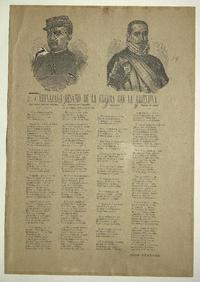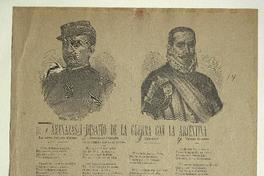 Amenazas i desafío de la guerra con la Arjentina / Rosa Araneda. [Chile] : [Impresor no identificado], [1892?] 1 hoja : retratos ; 39 x 27 cm. .