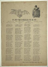 Un joven vuelto murcielago por una niña / Rosa Araneda. [Chile] : [Impresor no identificado], [entre 1866-1930] 1 hoja : ilustraciones ; 39 x 28 cm. .