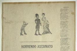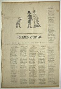 Horrendo asesinato : el italiano que mató a otro italiano por celos de una mujer / A. Reyes. [Chile] : [Impresor no identificado], [1893?] 1 hoja : ilustraciones ; 47 x 32 cm. .