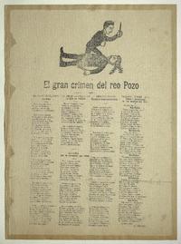 El gran crímen del reo Pozo / A. Reyes. [Chile] : [Impresor no identificado], [1892?] 1 hoja : ilustraciones ; 39 x 28 cm. .
