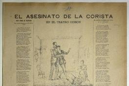 El asesinato de la corista en el Teatro Odeon / A. Reyes. [Chile] : [Impresor no identificado], [1894?] 1 hoja : ilustraciones ; 55 x 38 cm. .