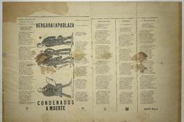 Vergara i Apablaza condenados a muerte / Adolfo Reyes. [Chile] : [Impresor no identificado], [1894?] 1 hoja : ilustraciones ; 38 x 55 cm. .
