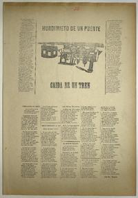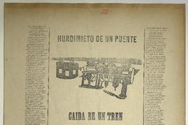 Hundimiento de un puente : caida de un tren / Adolfo Reyes. [Chile] : [Impresor no identificado], [1896?] 1 hoja : ilustraciones ; 55 x 38 cm. .