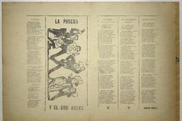 La Pascua y el Año Nuevo / Adolfo Reyes. [Chile] : [Impresor no identificado], [entre 1890-1901] 1 hoja : ilustraciones ; 38 x 55 cm. .