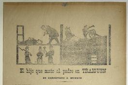 El hijo que mato al padre en Traiguen es condenado a muerte / Adolfo Reyes. [Chile] : Imprenta Maturana, [1896?] 1 hoja : ilustraciones ; 55 x 37 cm. .