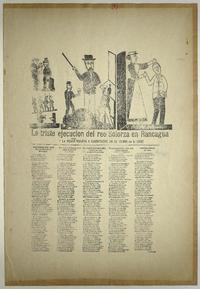 La triste ejecucion del reo Solorza en Rancagua ; y la mujer muerta a garrotazos en el cerro de la Cruz / A. Reyes. [Chile] : [Impresor no identificado], [1893?] 1 hoja : ilustraciones ; 54 x 38 cm. .