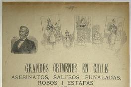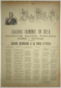 Grandes crimenes en Chile : asesinatos, salteos, puñaladas, robos i estafas ; Versos dedicados a la Rosa Araneda / Daniel Meneses. [Chile] : [Impresor no identificado], [1895?] 1 hoja : ilustraciones ; 55 x 39 cm. .