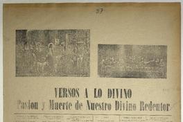 Versos a lo divino : pasion y muerte de Nuestro Divino Redentor / Daniel Meneses. [Chile] : Imprenta del Comercio, [1898?] 1 hoja : ilustraciones ; 55 x 39 cm. .
