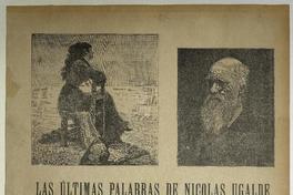 Las últimas palabras de Nicolas Ugalde condenado a muerte / Daniel Meneses. [Chile] : [Impresor no identificado], [1893?] 1 hoja : ilustraciones, retratos ; 54 x 39 cm. .