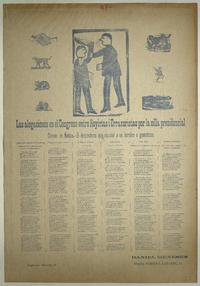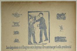 Las alegaciones en el Congreso entre reyistas y errazuristas por la silla presidencial ; Crímen en Ñuñoa : el despachero que asesinó a un hombre a garrotazos / Daniel Meneses. [Chile] : Imprenta Moneda, [1896?] 1 hoja : ilustraciones ; 56 x 38 cm. .