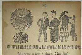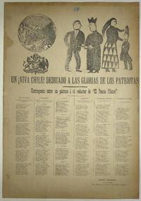 Un ¡Viva Chile! dedicado a las glorias de los patriotas ; Contrapunto entre un párroco i el redactor de "El Poncio Pilatos" / Daniel Meneses. [Chile] : [Impresor no identificado], [1895?] 1 hoja : ilustraciones ; 55 x 39 cm. .