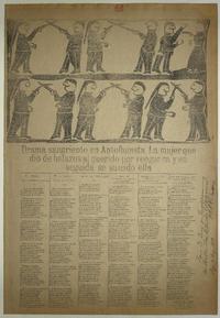 Drama sangriento en Antofagasta : la mujer que dió de balazos al querido por venganza y en seguida se suicidó ella / Daniel Meneses. [Chile] : Imprenta Moneda, [1900?] 1 hoja : ilustraciones ; 56 x 39 cm. .
