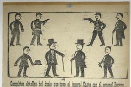 Completos detalles del duelo que tuvo el jeneral Canto con el coronel Boonen / Daniel Meneses. [Chile] : Imprenta Moneda, [1897?] 1 hoja : ilustraciones ; 54 x 39 cm. .