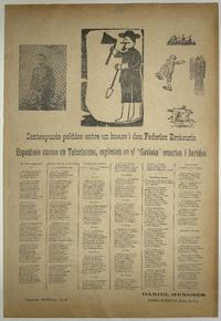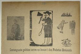 Contrapunto político entre un huaso i don Federico Errázuriz ; Espantoso suceso en Talcahuano, esplosion en el "Gaviota" muertos i heridos / Daniel Meneses. [Chile] : Imprenta Moneda, [1897?] 1 hoja : ilustraciones ; 56 x 38 cm. .