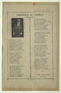 Cantares al pueblo / Justo Claro Canto. [Santiago] : Imprenta El Comercio, [1932?] 1 hoja : retratos ; 28 x 18 cm. .