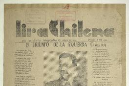 Lira chilena. [Chile] : [Editor no identificado], [1938?] 1 hoja : retratos ; 40 x 27 cm. .