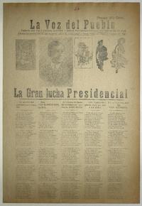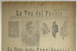 La Voz del Pueblo. Santiago : Imprenta Carmen, [1920?] 1 hoja : ilustraciones, retratos ; 55 x 39 cm. .