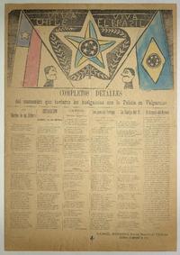 Completos detalles del encuentro que tuvieron los huelguistas con la Policia en Valparaiso / Daniel Meneses. Valparaíso : Imprenta G. Weidmann, [1903?] 1 hoja : ilustraciones ; 54 x 38 cm. .