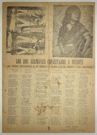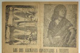 Los dos alemanes condenados a muerte por haber envenenado a la mujer, al padre i a la madre i dos parientes / Daniel Meneses. [Chile] : Imprenta CER., [entre 1890-1909] 1 hoja : ilustraciones ; 55 x 39 cm. .