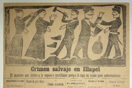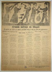 Crímen salvaje en Illapel : el zapatero que ultimó a la esposa a martillazos porque le negó un veinte para emborracharse / Daniel Meneses. Valparaíso : Imprenta G. Weidmann, [entre 1890-1909] 1 hoja : ilustraciones ; 55 x 39 cm. .