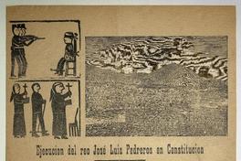 Ejecucion del reo José Luis Pedreros en Constitucion / Daniel Meneses. [Chile] : [Impresor no identificado], [1895?] 1 hoja : ilustraciones ; 56 x 38 cm. .