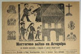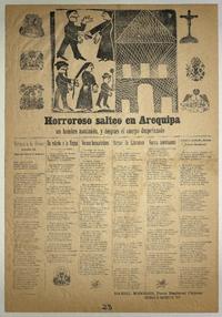 Horroroso salteo en Arequipa : un hombre asesinado, y despues el cuerpo despedazado / Daniel Meneses. Valparaíso : Imprenta G. Weidmann, [entre 1890-1909] 1 hoja : ilustraciones ; 55 x 38 cm. .