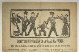 Muerte de un guardian en la calle del Puente ; Doble crímen en Coquimbo, el amante que asesinó a la querida por no tener que darle de comer / Daniel Meneses. [Chile] : Imprenta Moneda, [1897?] 1 hoja : ilustraciones ; 53 x 39 cm. .