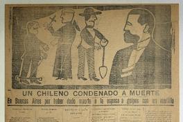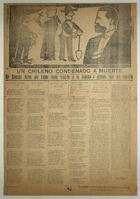 Un chileno condenado a muerte en Buenos Aires por haber dado muerte a la esposa a golpes con un martillo / Daniel Meneses. Valparaíso : Imprenta y Litografía de G. A. Rohde y Ca., [1902?] 1 hoja : ilustraciones ; 55 x 38 cm. .