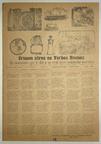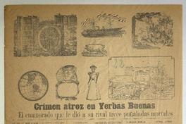 Crímen atroz en Yerbas Buenas : el enamorado que le dió a su rival trece puñaladas mortales / Daniel Meneses. Valparaíso : Imprenta G. Weidmann, [1904?] 1 hoja : ilustraciones ; 55 x 39 cm. .
